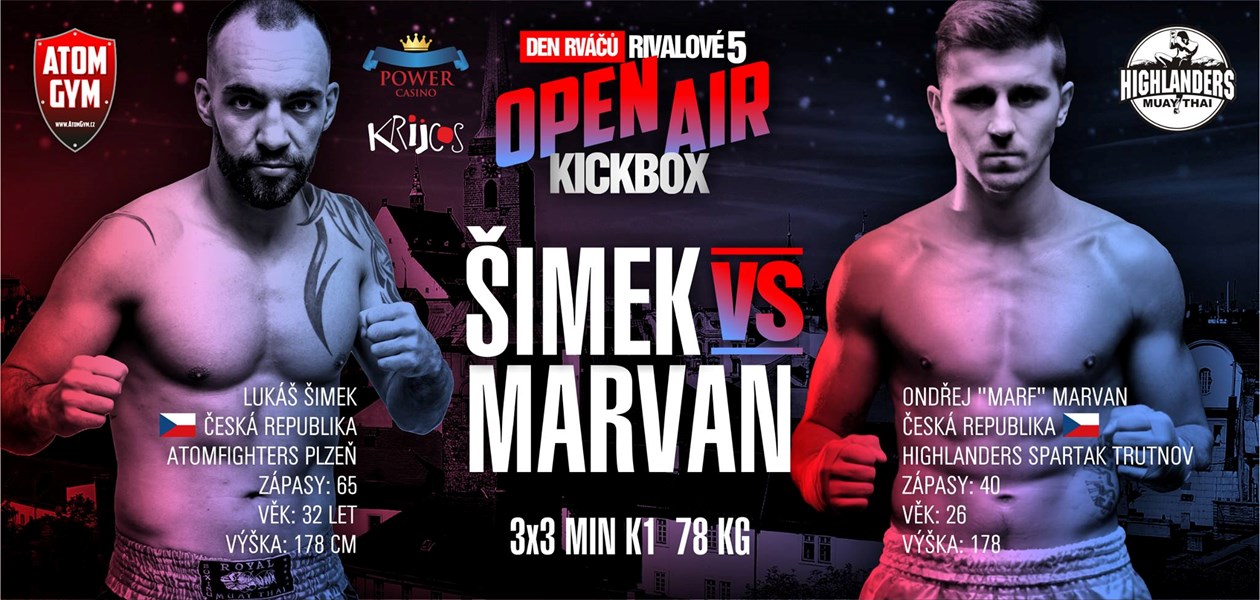 9.6.2017 - Plzeň a Open air akce s podtitulem "Rivalové - Den rváčů 5", která se nám bohužel nevydařila. Ondřej Marvan nastoupil proti místnímu Lukáši Šimkovi dle pravidel K-1 na 3 x 3 minuty. Šimek v obráceném gardu diktoval po celou dobu zápasu tempo a Ondra se bohužel do zápasu vůbec nedostal. Zasloužená prohra na body 3:0. Cesta bojovníka je jak rozbouřené moře - jednou nahoře a jednou dole.... Ondra prostě nebyl ve své kůži ...